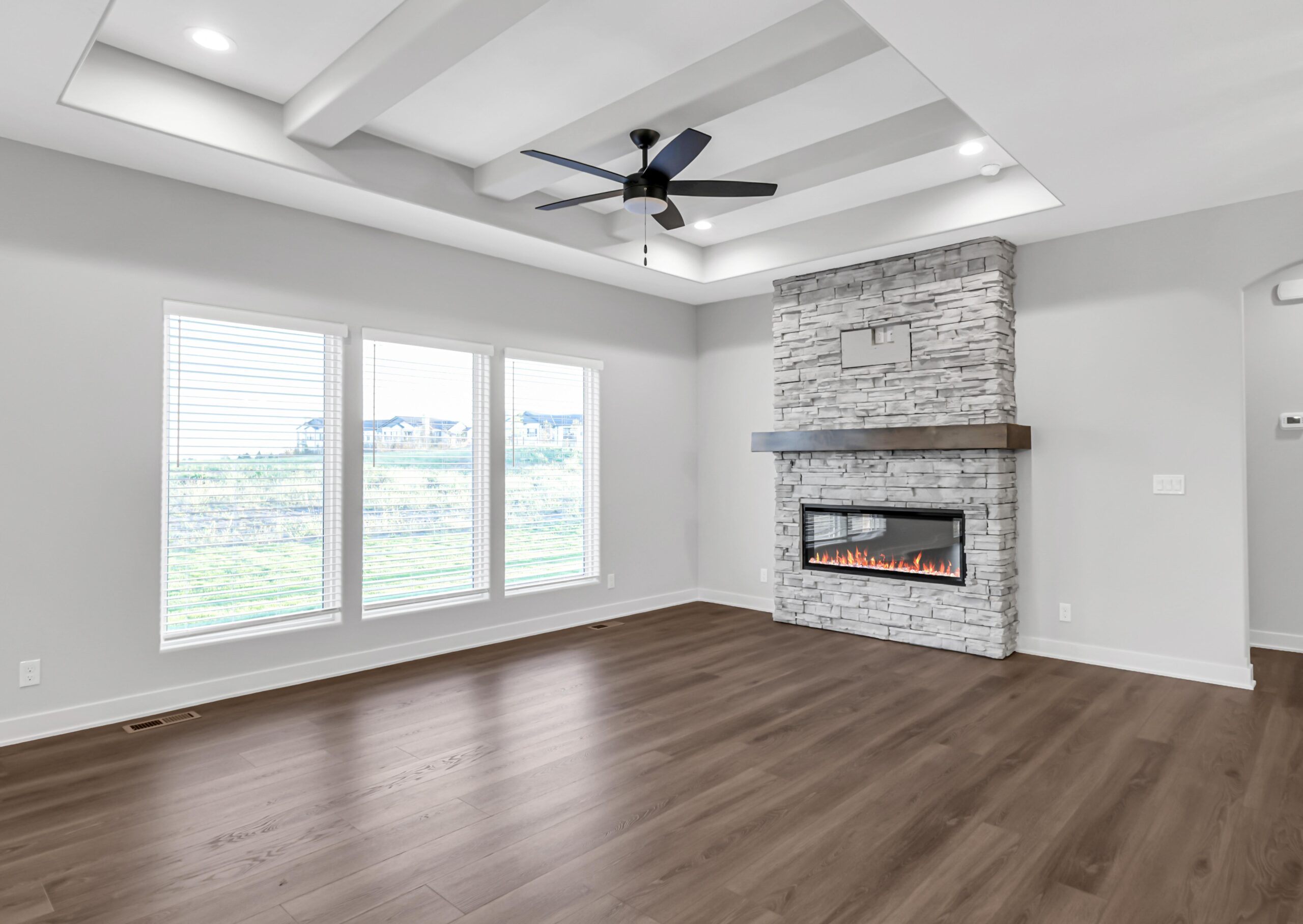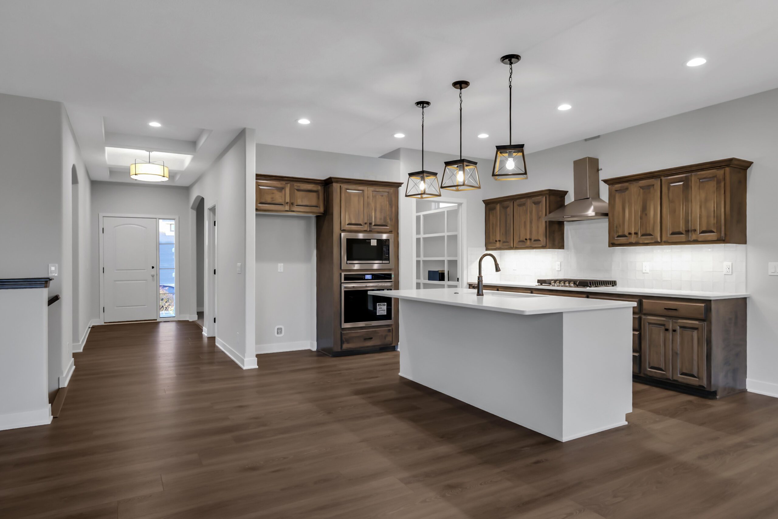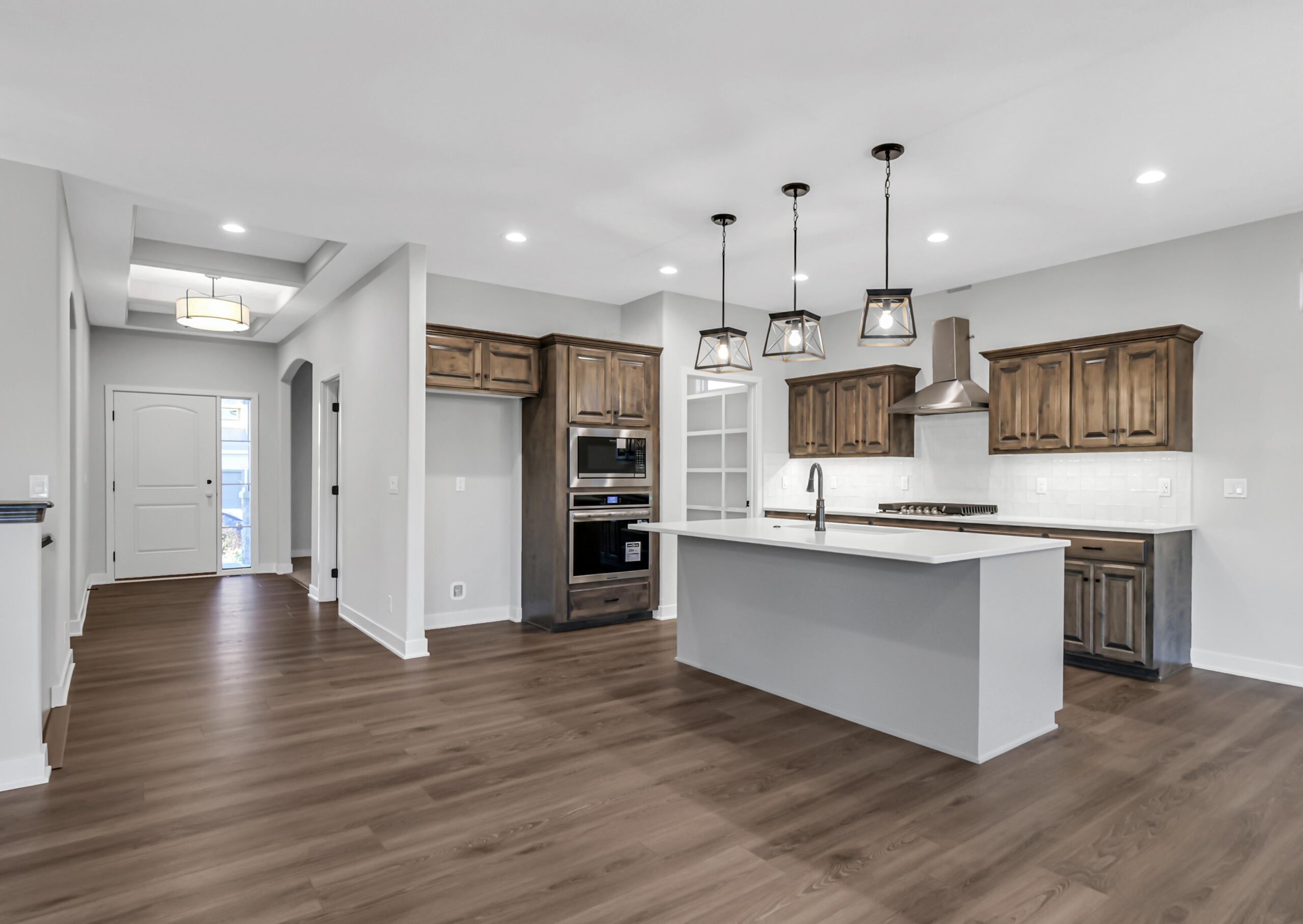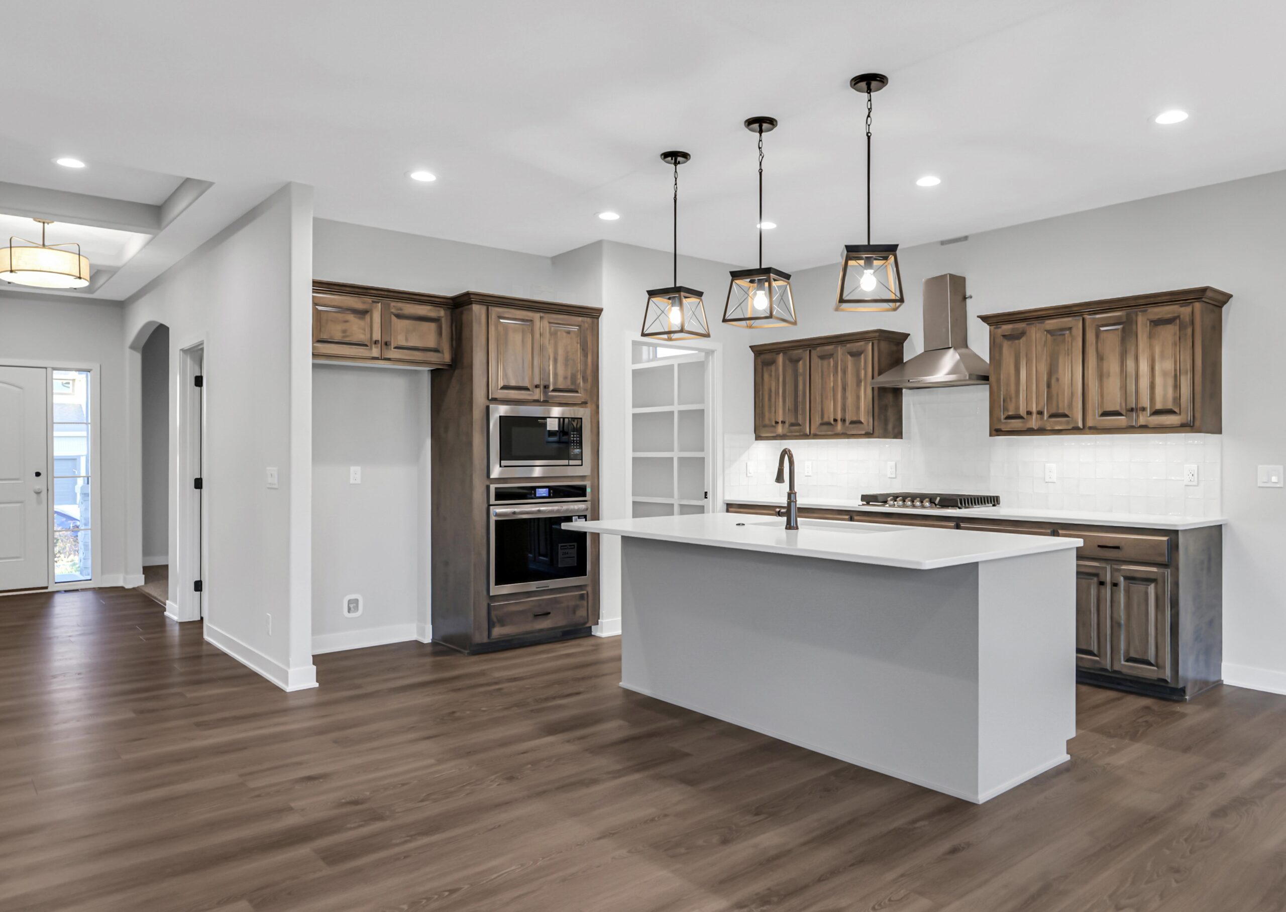 Step onto the covered front porch and enter a welcoming flex room, perfect for a home office, cozy sitting area, or creative space. The home flows seamlessly into a spacious kitchen featuring a center island and walk-in pantry, which opens to a bright great room with large windows that fill the space with natural light.