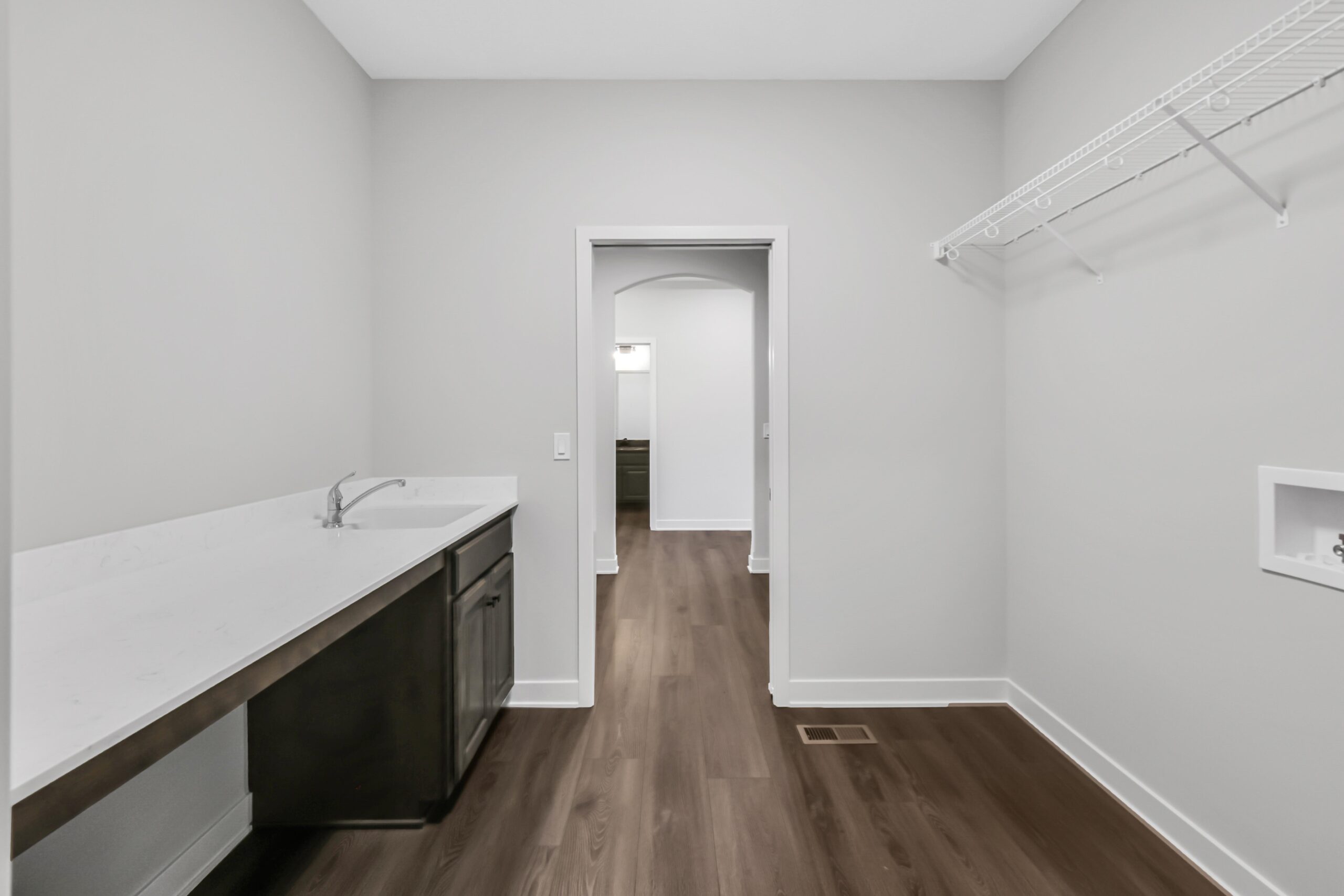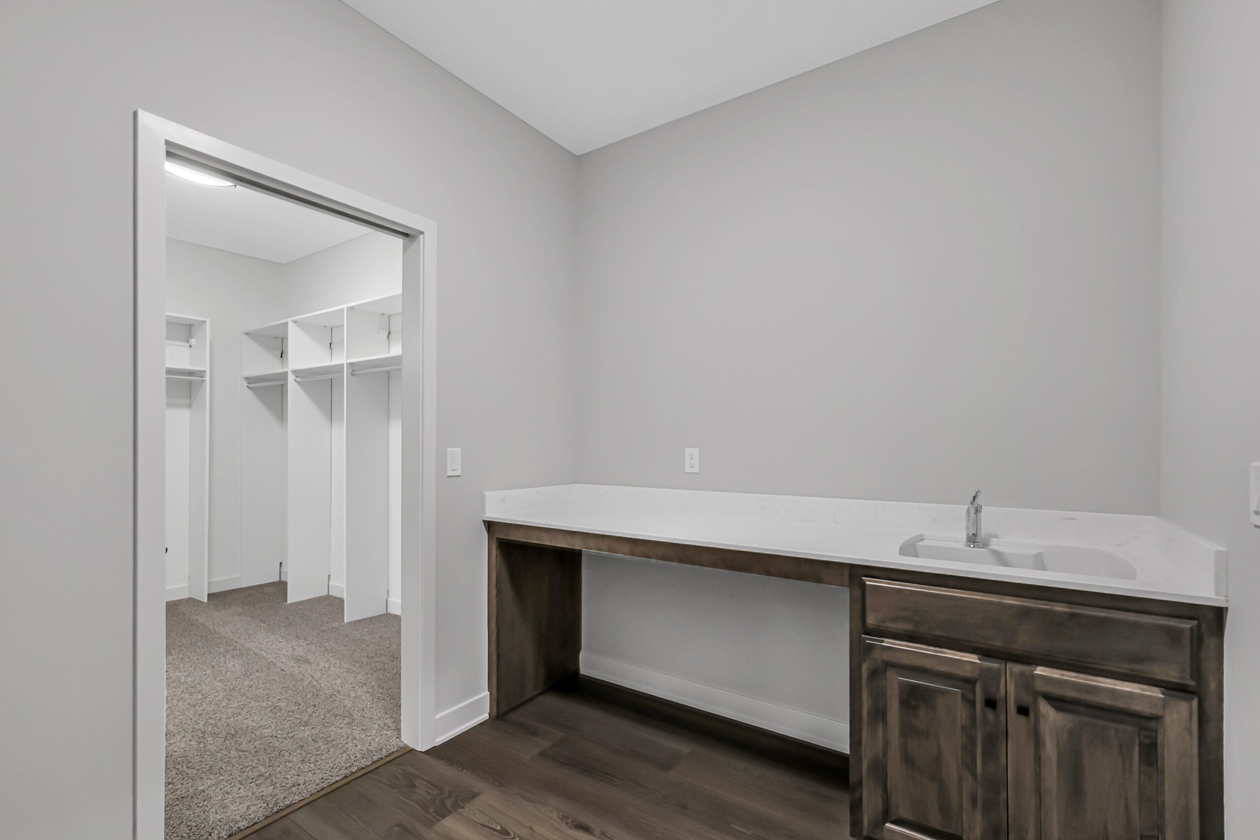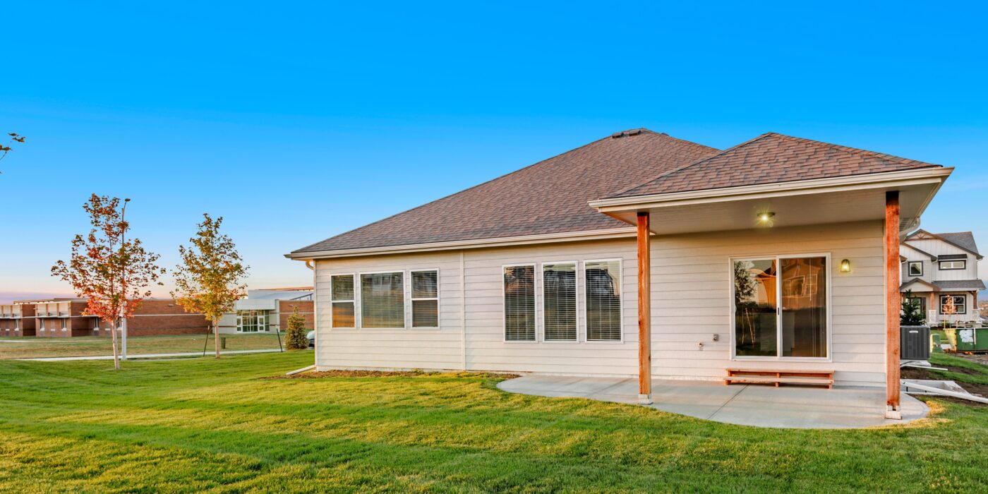 The dining area, tucked just off the kitchen, opens to a covered patio, ideal for morning coffee or evening relaxation. On the other side of the home, the primary suite offers a true retreat: a large bedroom, dual-sink bathroom, walk-in shower, and generous walk-in closet that conveniently connects to the laundry and mudroom.